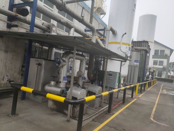 杭州蕭山杭氧氣體有限公司成立于2011年,座落于杭州市錢塘新區臨江工業園區,系杭州杭氧股份有限公司下屬子公司,法定代表人葉文良,注冊資本2000萬元,是一家從事空分生產,食品級、工業級液體二氧化碳生產與銷售的氣體公司。 杭州蕭山杭氧氣體有限公司一方面是為浙江巴陵恒逸己內酰胺有限責任公司(以下簡稱“巴陵恒逸”)提供合格氮氣,另一方面回收巴陵恒逸的二氧化碳尾氣并提純制成食品級、工業級液體二氧化碳,對外銷售。隨著巴陵恒逸氮氣需求量的增加,企業通過增加2臺空壓機使空分制氮氣能力達到4500Nm³/h以及外購部分液氮通過汽化方式確保巴陵恒逸氮氣需求(正常需求為6500Nm³/h)。同時企業還新增一臺冷水機,通過降低二氧化碳進干燥器前的溫度,來實現每年增加液體二氧化碳產能1.5萬噸,總產能達到21.5萬噸/年。產品氮[壓縮的]、二氧化碳[液化的]為危險化學品,故本項目屬于危險化學品建設項目。 前期經過立項(項目備案)、設立安全評價(安全評價意見書)、安全設施設計(安全工藝技術意見書)、施工設計、建設、調試等過程,于2021年9月15日進行試生產,現已具備設計的生產能力。