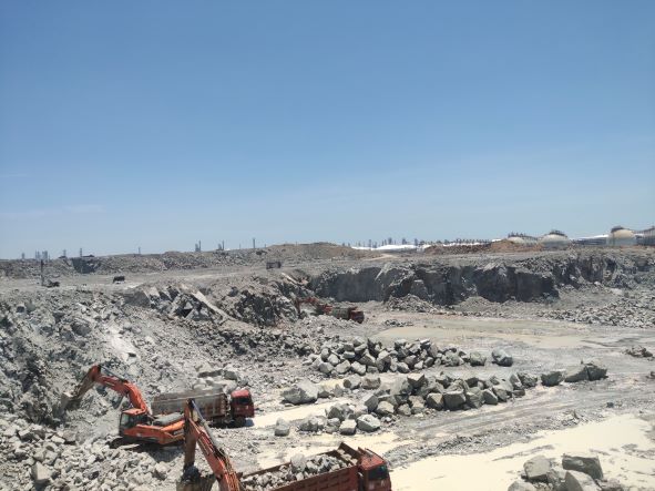 舟山市岱山縣大小魚山促淤圍涂工程是舟山(魚山)綠色石化園區建設項目的前期工程之一,工程將形成555公頃建設用地,故設置舟山市岱山縣大小魚山促淤圍涂工程(一期)岱山縣高亭鎮漁山村大、小魚山島建筑用石料(凝灰巖)礦,該礦山為工程性礦山,開采的石料部分用于海堤和成陸工程的填方料,部分加工為各級碎石用于石化基地建設。舟山市岱山北部促淤圍涂投資有限公司于2015年6月24日取得了采礦許可證(證號:C3309212015067120138721),有效期至2018年6月24日。2016年1月26日礦山采礦權人變更為舟山石化園區投資發展有限公司。礦山于2016年6月通過安全設施竣工驗收投入正常開采。通過礦山開采及圍涂形成的土地分階段移交浙江石油化工有限公司,由浙江石油化工有限公司開展綠色石化基地建設。礦山2022年6月委托本公司進行安全現狀評價,并取得安全生產許可證。