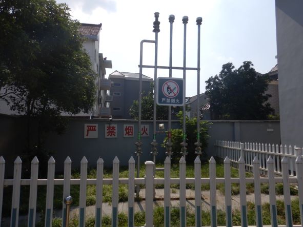 加油站安裝有汽油卸油和加油油氣回收系統。加油區設置加油罩棚,罩棚混凝土框架結構。罩棚下設置2臺雙油品雙槍和2臺雙油品四槍潛油泵式加油機(汽油加油槍帶油氣回收);埋地油罐區設有430 m³埋地臥FF雙層復合油罐(油罐均為非車道罐),其中230m³汽油罐(分別儲存92#汽油和95#汽油),230m³柴油罐(儲存0#柴油),油罐總容積折算為90m³(柴油罐折半計入),根據《汽車加油加氣站設計與施工規范》GB50156-20122014年版)的相關規定,該加油站為三級加油站。