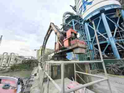 該碼頭3#泊位主要裝卸貨種為粉煤灰和礦粉等散貨,設置一臺負壓卸船機,采用負壓卸船機將粉煤灰及礦粉直接打入筒倉,碼頭前沿作業帶為10m,并在作業帶后方設置6個筒倉,作為碼頭中轉區。